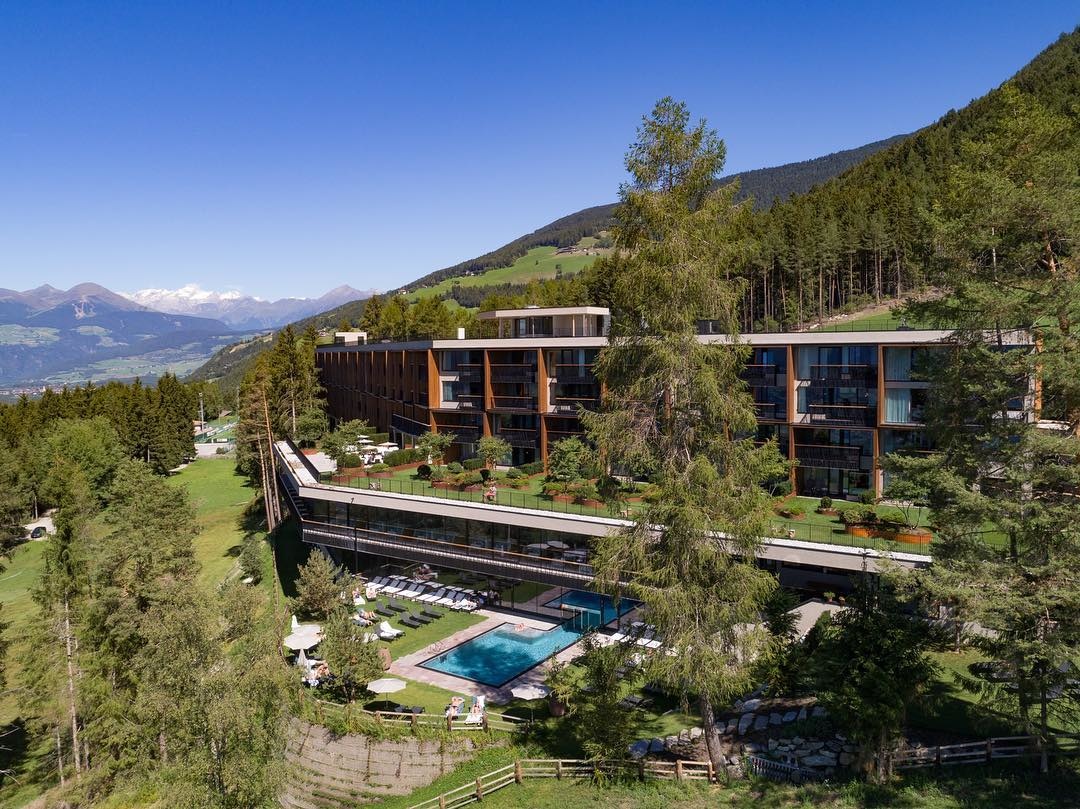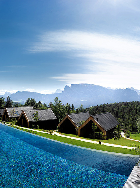 Resort da sogno con vista panoramica sui picchi delle Dolomiti, delle Odle, il Sassolungo, lo Sciliar, passando dal Catinaccio al gruppo del massiccio del Latemar, fino alle cime del Corno Nero e del Corno Bianco. Questo esclusivo “lodge nella natura, con la natura dentro”, incantevole rifugio antistress, sorge sull’altopiano di Renon, tra alberi profumati, SPA nascosta nel bosco e 20 chalet, di cui alcuni affacciati su un laghetto naturale. Ideato e costruito in bioedilizia, secondo il concept della “foresta”, con materiali naturali autoctoni, è esso stesso parte del paesaggio.