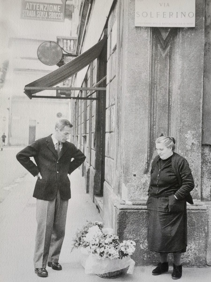 Dino Buzzatiche si intrattiene con una fioraia in via Solferino; una ragazza con il tacco impigliato in una rotaia di via Fatebenefratelli; un dirigibile che sorvola il Duomo di Milano