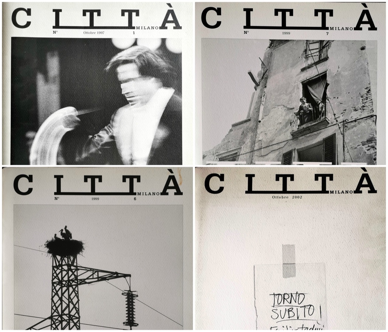 Un dirigibile doppia le guglie del Duomo (Archivio Publifoto Olympia/Città, 1999)1951, via Fatebenefratelli, la maledizione delle rotaie (Archivio Publifoto Olympia/ Città, 1999)Achille Castiglioni, Vico Magistretti, Marco Zanuso e Ettore Sottsass (Ph Carlo Orsi/Città, marzo 1998)Dario Fo (Ph. Carlo Orsi/Città, ottobre 1997)Cochi e Renato davanti al Sant’Ambroeus (Ph. Carlo Orsi/Città, ottobre 1998 )Dino Buzzati con la fioraia di via Solferino (Città, 1999)Cucina del ristorante Nuova Asia ( Ph.Andrea Micheli/Città,2001)L’aeroporto di Malpensa (Ph. Ferdinando Scianna/Città, aprile 1999)Alessandra Ferri (Ph. Fabrizio Ferri/Città, marzo 1998)Umberto Veronesi (Ph. Francesco Cito/Città, marzo 1998)