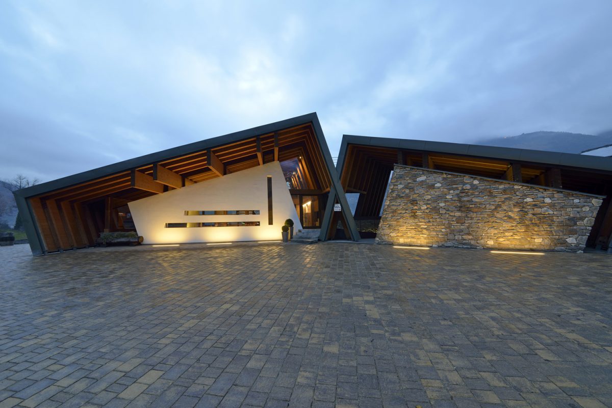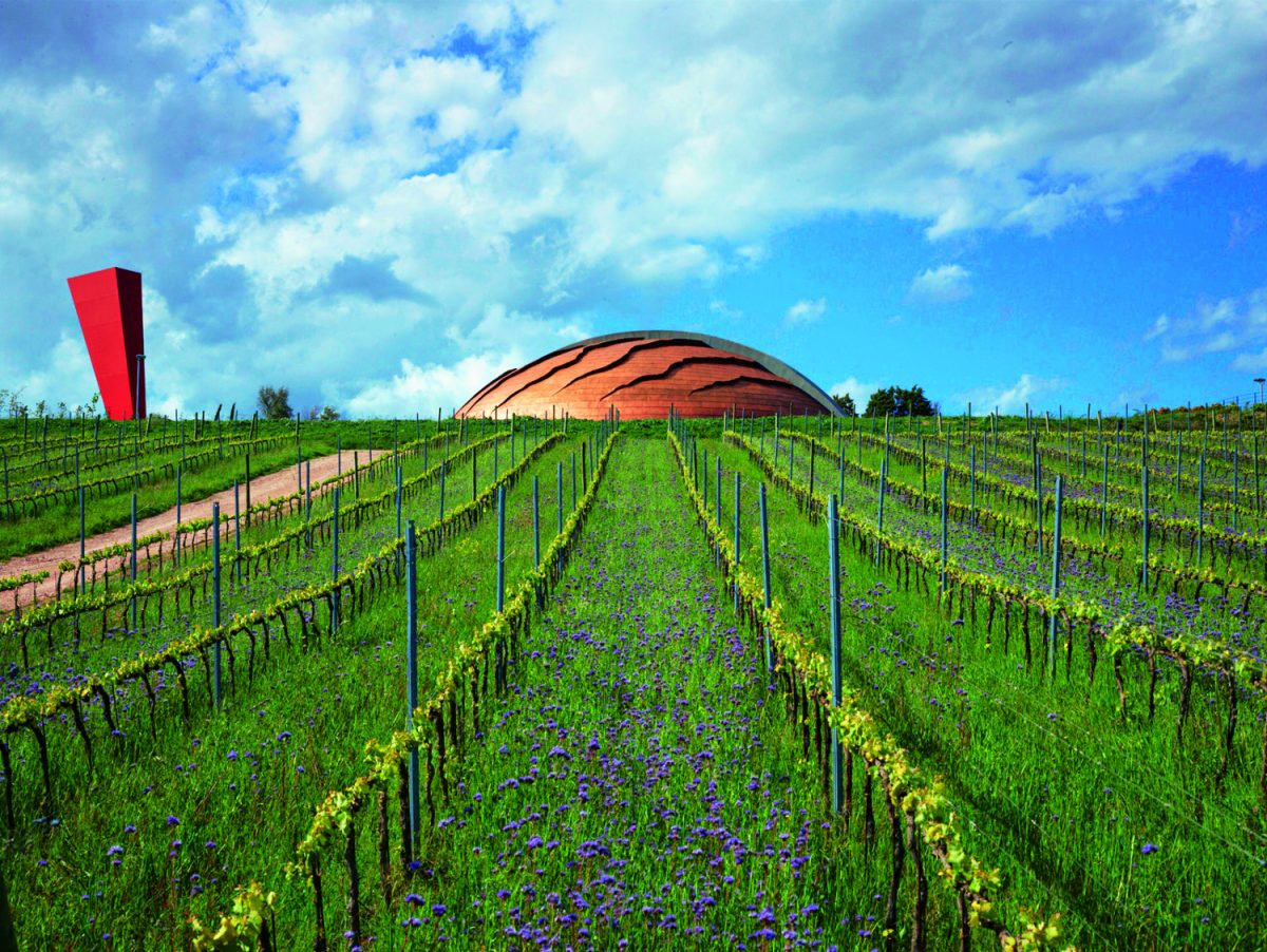 CANTINA TRAMIN, Termeno (BZ). Tappa rigorosa per gli amanti del Gewürztraminer. Qui è il top. Suggestiva poi l’inconfondibile architettura. Idealmente le parti verdi sono braccia che cingono, proteggendole, le vigne intorno. Cantinatramin.it