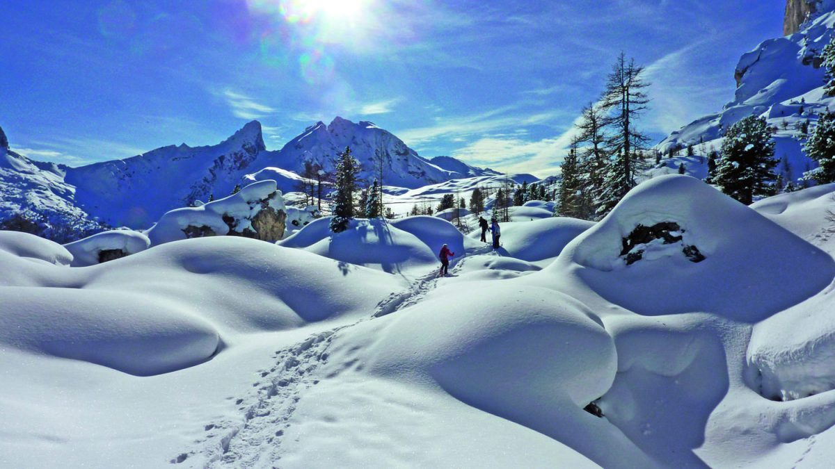 Neve fresca da queste parti è sinonimo anche di «ciaspe», il termine ladino che indica le racchette con cui ci si sposta a piedi sulla neve, per apprezzare la montagna in modo alternativo, con tempi più dilatati che consentono di catturare scorci inconsueti ed esplorare vie poco battute. Tra le molte opzioni delle Dolomiti bellunesi, due da non perdere sono Auronzo di Cadore e il Monte Pelmo, ideali per ciaspolate di gruppo grazie a percorsi ad anelli e tracciati abbordabili per salire oltre i 2 mila metri.