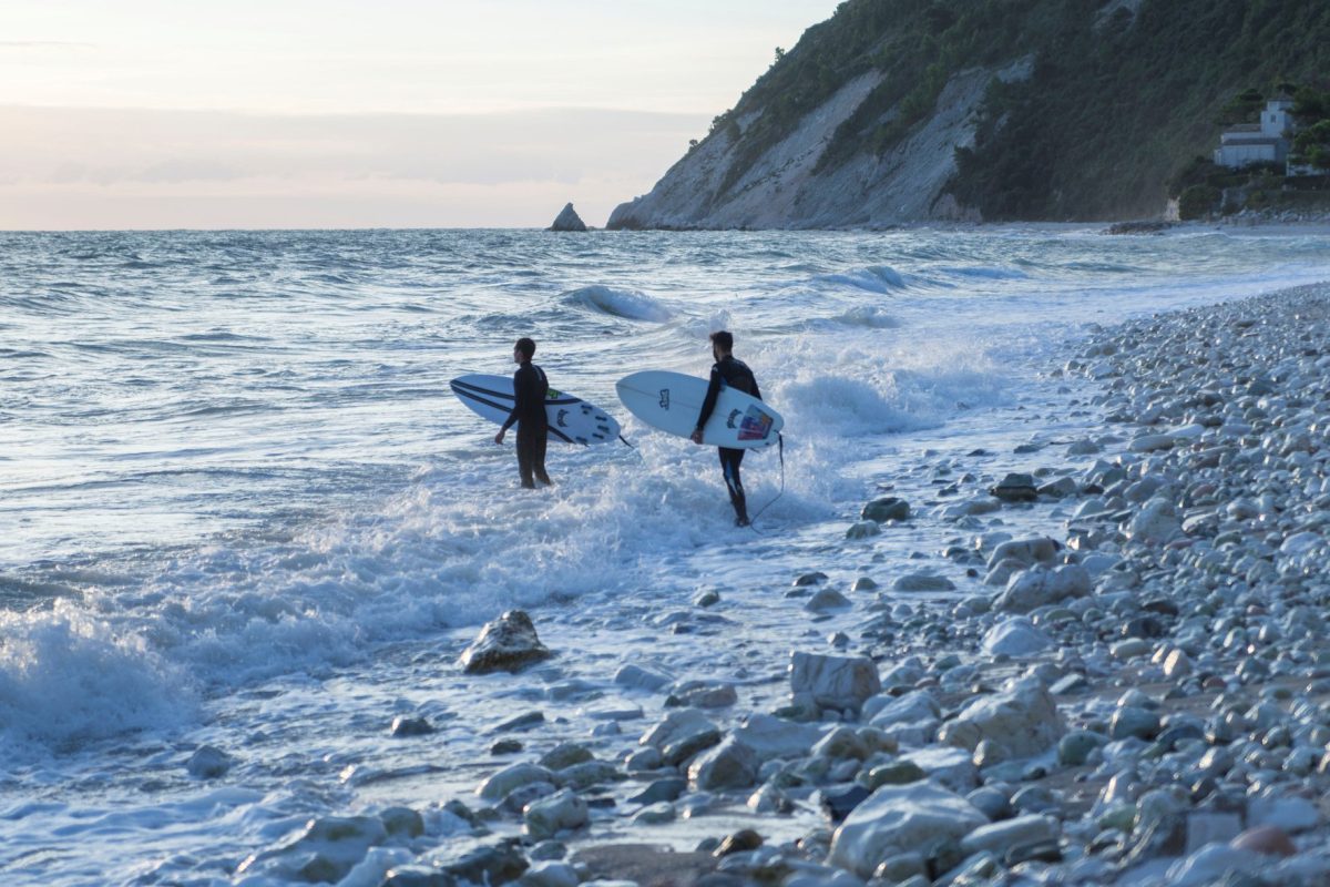 Da calmo, il mare è una tavola piatta color turchese, quasi trasparente vicino alla riva dove culla un tappeto di sabbia candida. A volte l’acqua s’infuria, si gonfia d’onde di schiuma, lasciandosi cavalcare dai fanatici del surf. Potrebbero legittimamente sembrare le Hawaii, invece succede a Portonovo, nel parco del Conero, più a sud rispetto ad Ancona. Lo scenario e i colori sono pressoché identici rispetto alle celebri isole nel Pacifico con la differenza che non bisogna rinchiudersi in aereo per un’eternità, né farsi martellare il cervello dal fuso orario. E i costi risultano decisamente più abbordabili.