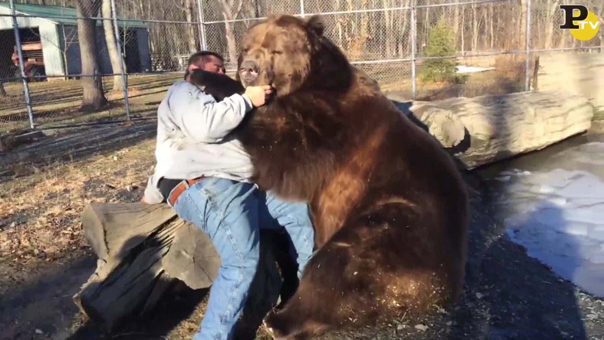 Con più di 12 milioni di visualizzazioni questo video è diventato virale e ha affascinato molti, che non si aspettavano di vedere immagini di un’amicizia così profonda e tenera tra un uomo e un orso di 700 chili. Caricato sulla pagina Facebook di Orphaned Wildlife Center, il video mostra Jim e Jimbo (orso di 21 anni che ha vissuto nel centro fin da cucciolo) abbracciarsi, coccolarsi e giocare.