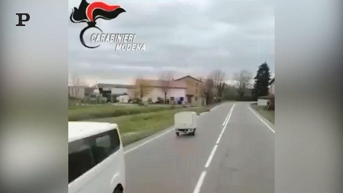Questa mattina un’ape car ha seminato il panico tra le strade di Campogalliano, in provincia di Modena. Nel video si vede la vettura circolare a zig zag ed in contromano mentre sopraggiungono altri veicoli. Un carabiniere è riuscito a bloccare il mezzo, inseguendo a piedi la vettura e aprendo la portiera. Dopo il ritiro della patente ed il sequestro del mezzo, il conducente è stato trasportato in stato confusionale all’Ospedale di Carpi.
