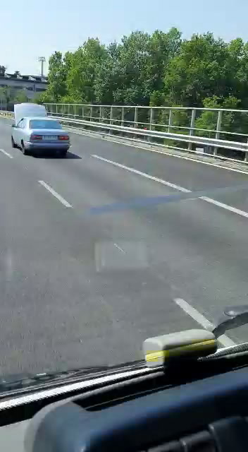 Guardate come viaggiava questa auto in piena Tangenziale Est di Milano, con il cofano aperto e l’autista che cercava di vedere in qualche modo la strada davanti a lui.