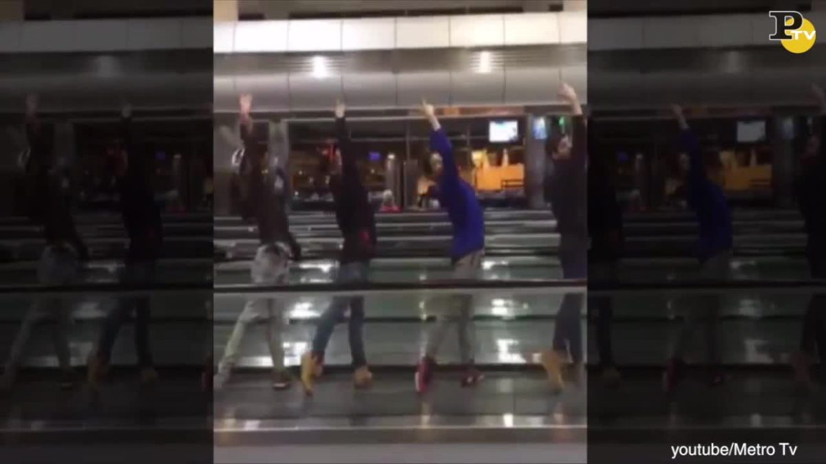 Siamo all’aeroporto di Denver, Colorado. Il volo che doveva riportare a casa i componenti dello “State Street Ballet“, famoso corpo di ballo di Santa Barbara in California, era in forte ritardo e così i ragazzi e le ragazze hanno inscenato uno spettacolo divertente ballando, facendo riscaldamento ed altre evoluzioni sui tapis roulant che portano i passeggeri da un gate all’altro.