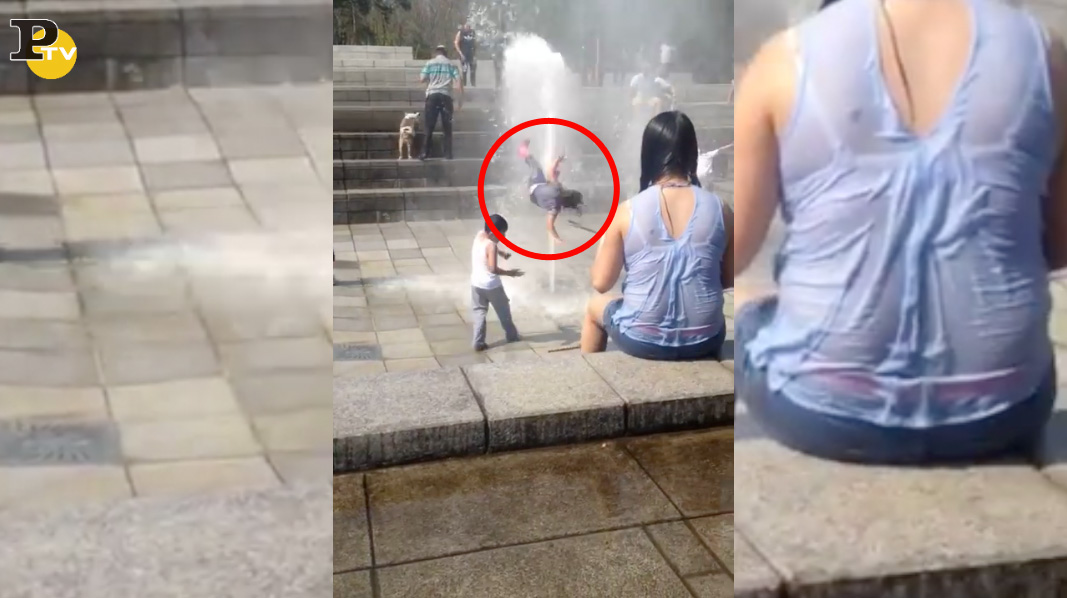 Una lezione che ha imparato per bene soprattutto questa bimba di 4 anni che con i suoi fratelli giocava vicino ad una fontana. Fontana che aveva diversi getti d’acqua tra cui uno centrale davvero potente. La piccola impavida si è però avvicinata lo stesso e si è messa sopra il bocchettone proprio un istante prima del getto che l’ha fatta volare per aria con tanto di capriola per chiudere con una bella caduta.