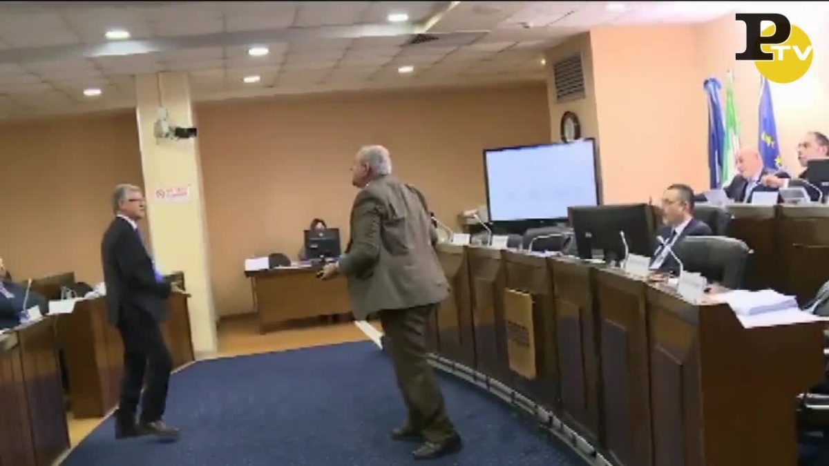 Durante una seduta del consiglio regionale della Basilicata si discute di sanità ma gli animi si surriscaldano quando il presidente del consiglio Piero Lacorazza rimprovera l’esponente di centro Francesco Mollica per aver sforato i 10 minuti previsti (da regolamento) per il suo intervento. A quel punto il consigliere si alza e si dirige urlando verso il banco della presidenza, spingendo poi via in malo modo il consigliere PD Santarsiero che tentava di fermarlo..