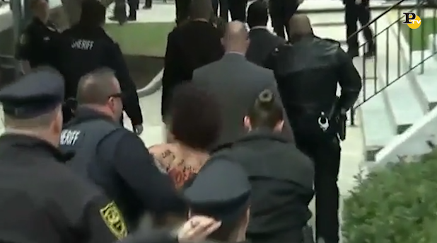 Mentre Bill Cosby, accusato di molestie sessuali, entrava nel tribunale di Norristown, per il processo a suo carico, una manifestante in topless con la scritta sul corpo “Women’s Lives Matter” (le vite delle donne contano), ha tentato di scagliarsi contro il comico americano. La donna è stata fermata dalla polizia.