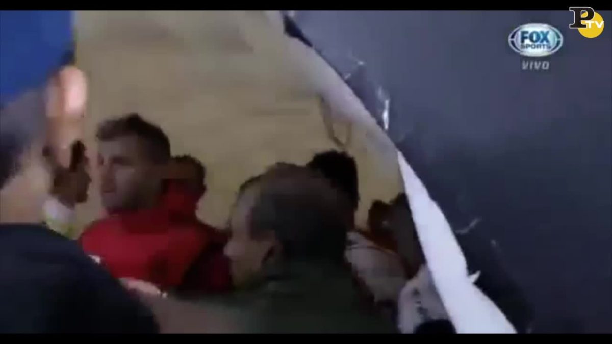 I giocatori del River infatti sono stati aggrediti all’ingresso in campo nel secondo tempo dagli ultras del Boca che hanno prima squarciato il telo che copre il sottopassaggio che divide gli spogliatoi dal campo poi via hanno lanciato all’interno del gas urticante e lacrimogeno al peperoncino.