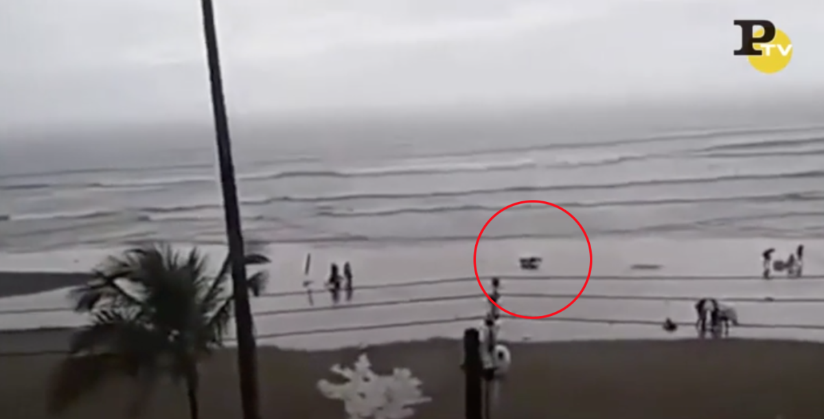 Una ragazza di 25 anni è stata colpita da un fulmine mentre stava passeggiando sulla spiaggia di Praia De Sonho, in Brasile. Il tutto è stato ripreso in un video da un turista che stava inquadrando la riva. La donna, di nome Talin Campos, ha avuto un arresto cardiaco ed è stata ricoverata in ospedale in condizioni critiche.
