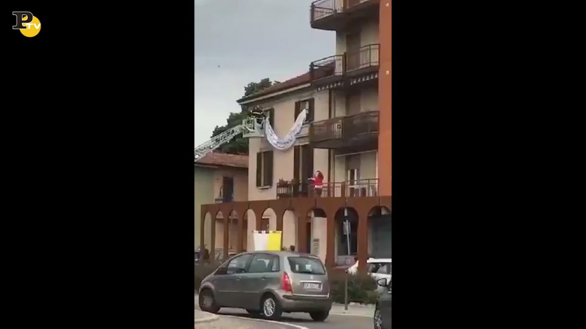 Uno striscione con la scritta «Non sei il benvenuto» affisso sulle finestre di una casa privata è stato rimosso questa mattina dai vigili del fuoco a Brembate, dove è giunto in visita il ministro dell’ Interno Matteo Salvini, che si è poi intrattenuto con alcuni simpatizzanti in un bar. A pubblicare le foto dello striscione rimosso, per cui è stato necessario usare un’autoscala, è stato il sindaco di Bergamo Giorgio Gori che commenta: “Stamattina alle 9 Salvini parlava a Brembate ad un’iniziativa di partito. Una signora ha esposto alla finestra uno striscione. Poco dopo lo striscione è stato rimosso dai vigili del fuoco. Domando: chi ha dato loro l’ordine di intervenire? A che titolo?”.