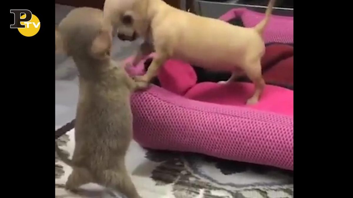 Questi due cagnolini sono impegnati in una bella litigata piuttosto animata che sembra non voler finire molto in fretta! Chissà di cosa staranno discutendo i due “amici” a quattro zampe…