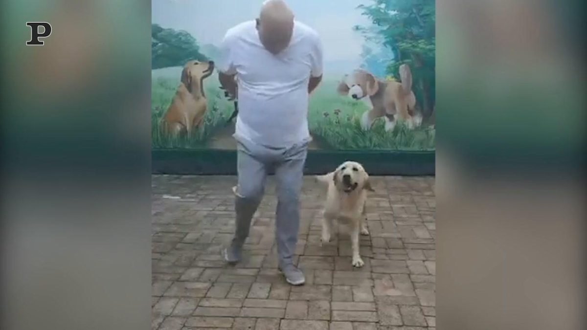 Il cane balla seguendo attentamente i passi del padrone, che lo guida nella coreografia. Prima una zampa poi l’altra ed ecco fatto: i due non sbagliano una mossa e sono perfettamente sincronizzati tra loro. Un vero spettacolo!