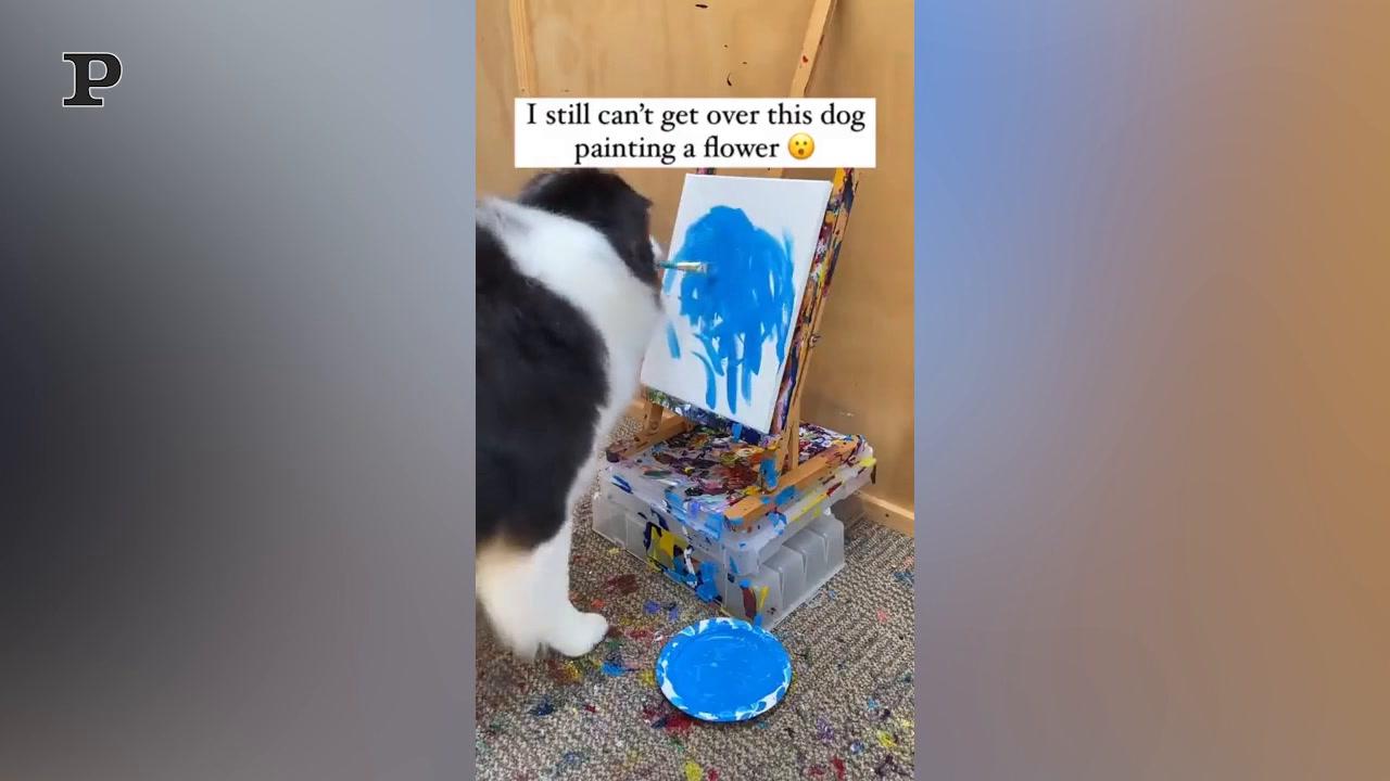 Questo adorabile cucciolone è un vero fenomeno: con tanto di tela, pennelli …