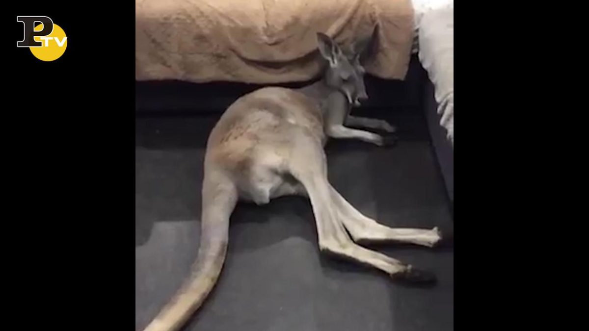 Questo canguro stava tranquillamente riposando sul divano, quando all’improvviso è lentamente scivolato e caduto a terra… senza però smettere di dormire! Ea davvero molto stanco!