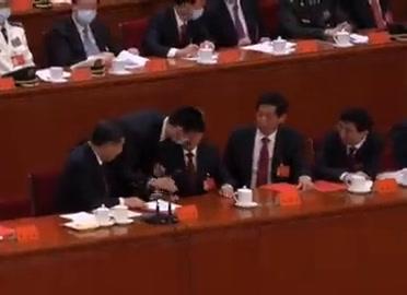 La drammatica scena ripresa dalle televisioni e con oltre 2000 testimoni. Sedeva al fianco dell’attuale (riconfermato) segretario del partito Xi Jinping