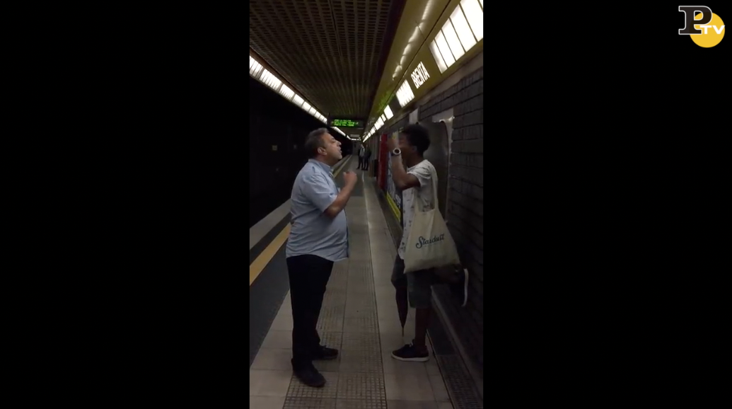 Metropolitana di Milano. Da una parte il controllore, dall’altra un ragazzo di colore. Il giovane non ha pagato il biglietto ma ha scavalcato il tornello di ingresso. Il controllore così lo ha seguito fino alla banchina per cercare di fermarlo. siamo alla fermata della linea 3, la Gialla, di Brenta.