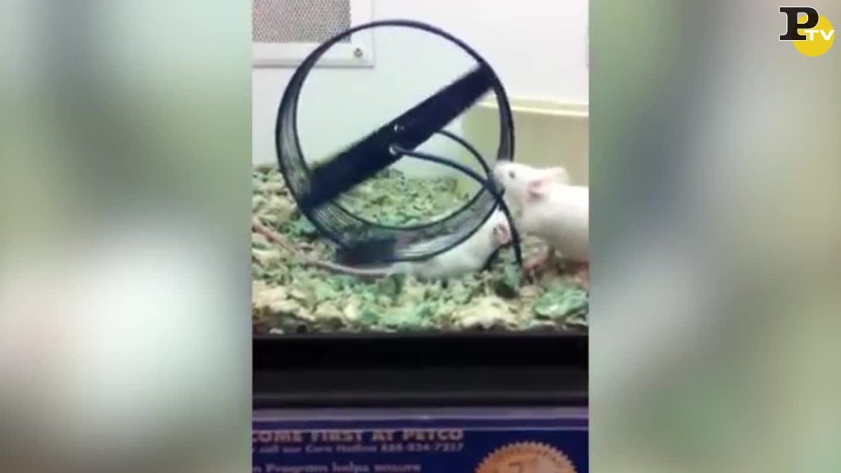 Questi 3 criceti hanno trovato un nuovo modo di divertirsi sulla ruota: correre all’esterno della girella.