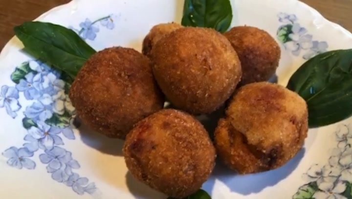 Procedimento – Tritate la cipolla, in una capace pentola fate scaldare una generosa spruzzata di olio extravergine (almeno 6 cucchiai) e fate rosolare la cipolla, aggiungete i pomodori tagliati grossolanamente. Quando saranno ammorbiditi aggiungete due o tre foglie di basilico e il pane fatto a tocchetti. Fate rosolare bene poi se del caso aggiungete uno o due bicchieri di acqua e fate andare a fuoco dolce rigirando di quando in quando e aggiustando di sale e di pepe. Quando si sarà formata la pappa (deve essere consistente) spegnete e fate freddare aggiungendo altro basilico. A quel punto tagliate la mozzarella a dadini e prendete con le mani un po’ di pappa, mettete al centro un dadino di mozzarella e formate una crocchetta girando l’impasto tra le mani. Sbattete le uova aggiustando di sale e di pepe, infarinate le crocchette e passatele una ad una nell’uovo sbattuto poi nel pangrattato e ancora nell’uovo. Portate a temperatura in una capace padella l’olio di girasole e friggete le crocchette un po’ alla volta. Sistematele su carta assorbente per far loro perdere l’unto e spolverate di sale.