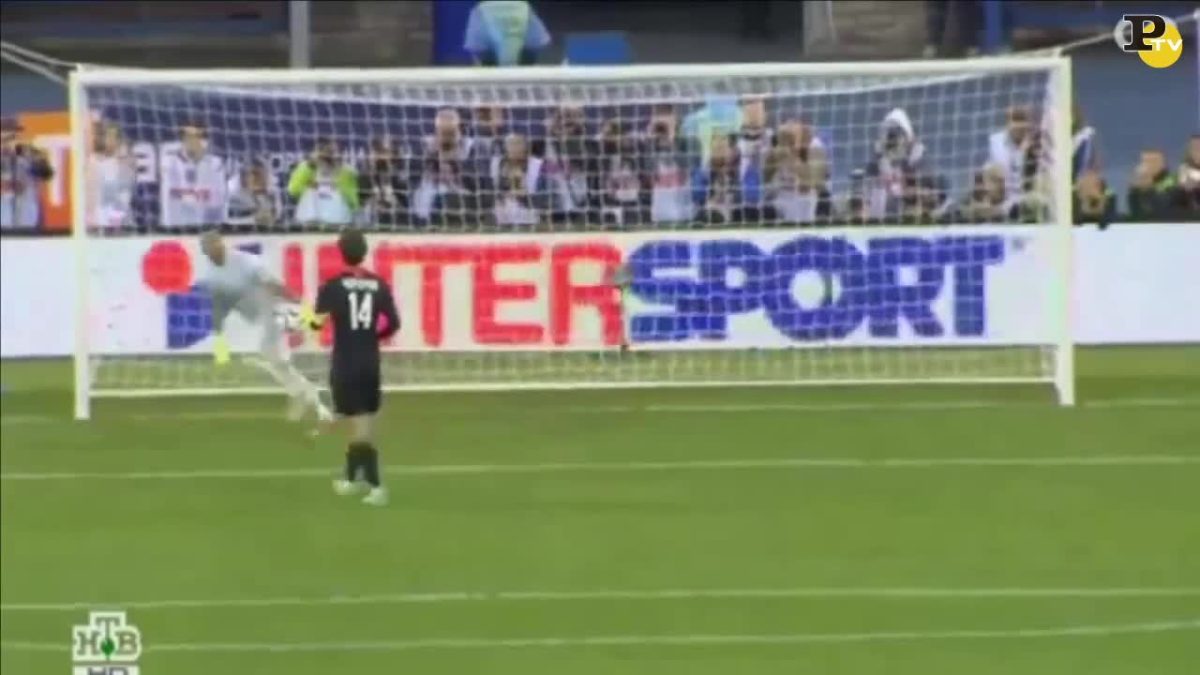 Ai rigori della Supercoppa Russa, il difensore della Lokomotiv Mosca Vedran Corluka tira in porta ma il risultato è un rigore imbarazzante, lento debole e centrale: la palla arriva morbidamente tra le mani del portiere.