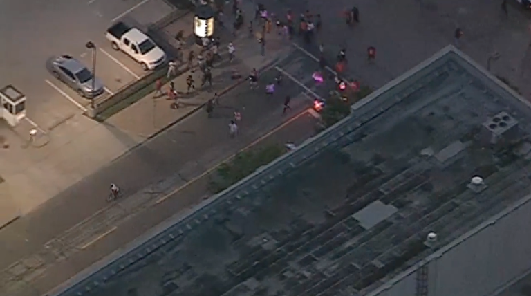 La manifestazione è seguita anche da alcuni elicotteri delle televisioni americane oltre che della Polizia. Sono loro a riprendere la fuga dei presenti ed i poliziotti colpiti che restano a terra, stesi, uccisi o feriti.