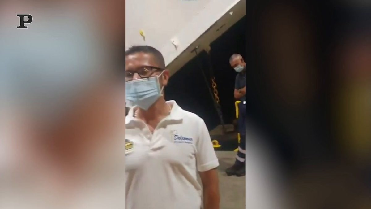 “Mi faccia vedere il regolamento che devo darle il biglietto con la mascherina”, si sente dire dalla ex hostess al personale di bordo, prima di salire sul traghetto per il ritorno dall’isola della Maddalena. “Devo mettere la mascherina in macchina per darvi il biglietto?”, domanda insistendo di vedere un regolamento.
