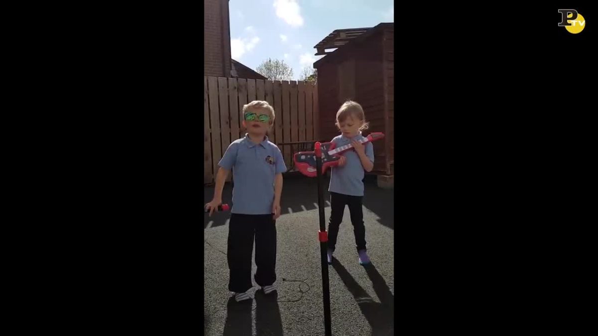 Due bambini si ritrovano in giardino a cantare Sweet Child O’ Mine, famosissima canzone dei Guns N’ Roses. Le idee sono già molto chiare: il cantante si muove come fosse sul palco e il chitarrista strimpella lo strumento come un navigato musicista. Tutto in regola per diventare dei futuri “rocchettari”.