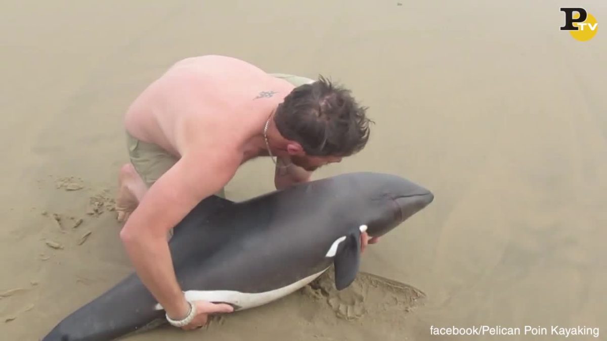 Un delfino spiaggiato, una guida che passa, lo vede, lo abbraccia e lo riporta in mare, salvandolo. Walvis bay, Namibia. Naude Dreyer è una guida turistica e come tutte le mattine sta passeggiando sulla “sua” spiaggia. Dove si trova un delfino, un giovane esemplare di Banguela. Il piccolo mammifero è del tutto fuori dall’acqua e non ha alcuna possibilità di ritrovare la via del mare e salvarsi.