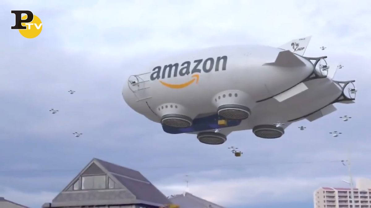 Il video dell’enorme dirigibile di Amazon che scarica uno sciame di piccoli droni è spaventoso ed è diventato subito virale sul web. L’imponente aeromobile che sorvola la città evoca scene da invasione aliena ma non è proprio il caso di preoccuparsi, perché si tratta di un fake realizzato da un artista giapponese della video produzione, che ha postato il video (e in seguito alcune ricostruzioni del suo lavoro) sul suo account Twitter.