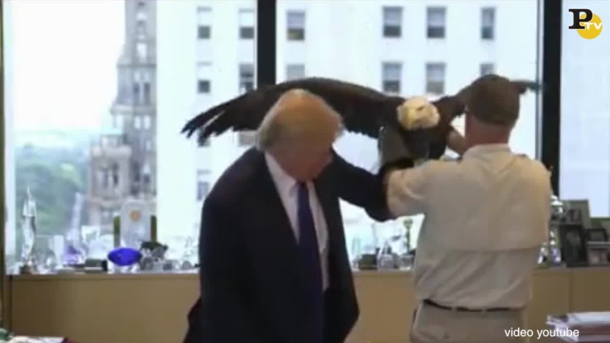 eppure questo video girato lo scorso agosto mostra un Donald Trump in difficoltà davanti ad uno dei simboli degli Stati Uniti: l’aquila. Il servizio fotografico di Time infatti prevedeva la presenza di due soggetti: Donald Trump e “Zio Sam”, questa bellissima aquila reale di 27 anni. Una vera celebrità negli Usa.