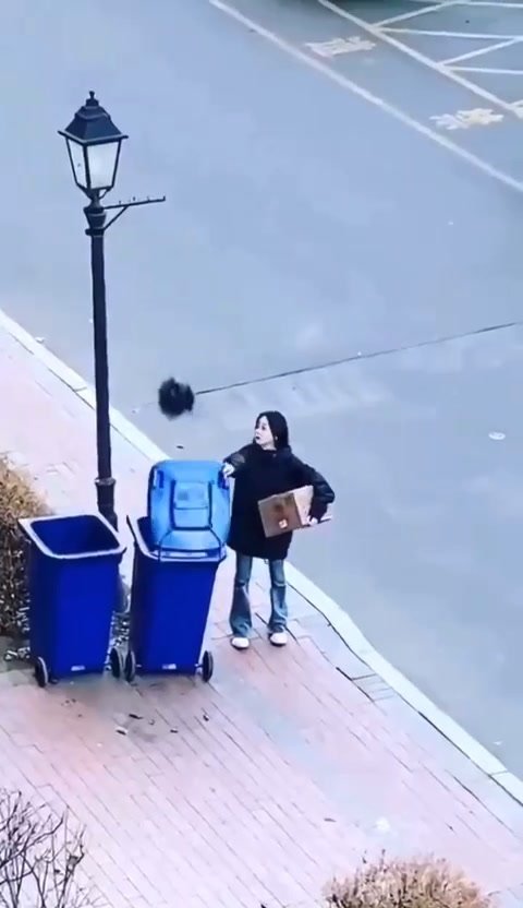 Una giovane donna asiatica si aggira per i marciapiedi del suo quartiere con in mano un sacchetto dell’immondizia. Ha entrambe le mani occupate, perciò, una volta arrivata davanti al cestino, si ingegnerà per buttare la pattumiera usando una sola mano. Ma sarebbe stato troppo facile appoggiare il sacchetto per terra.