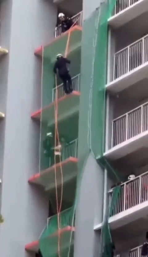Dei pompieri sono intervenuti per salvare una donna dal suo tentativo di suicidio. I salvatori sono scesi dall’alto del palazzo (posizionandosi di un piano superiore rispetto a quello della donna) con delle corde e hanno fatto scivolare un’ampia rete lungo la facciata del condominio per sbarrare la strada alla donna e costringerla ad allontanarsi dal bordo del suo balcone cosicché rientrasse al sicuro nelle mura di casa.