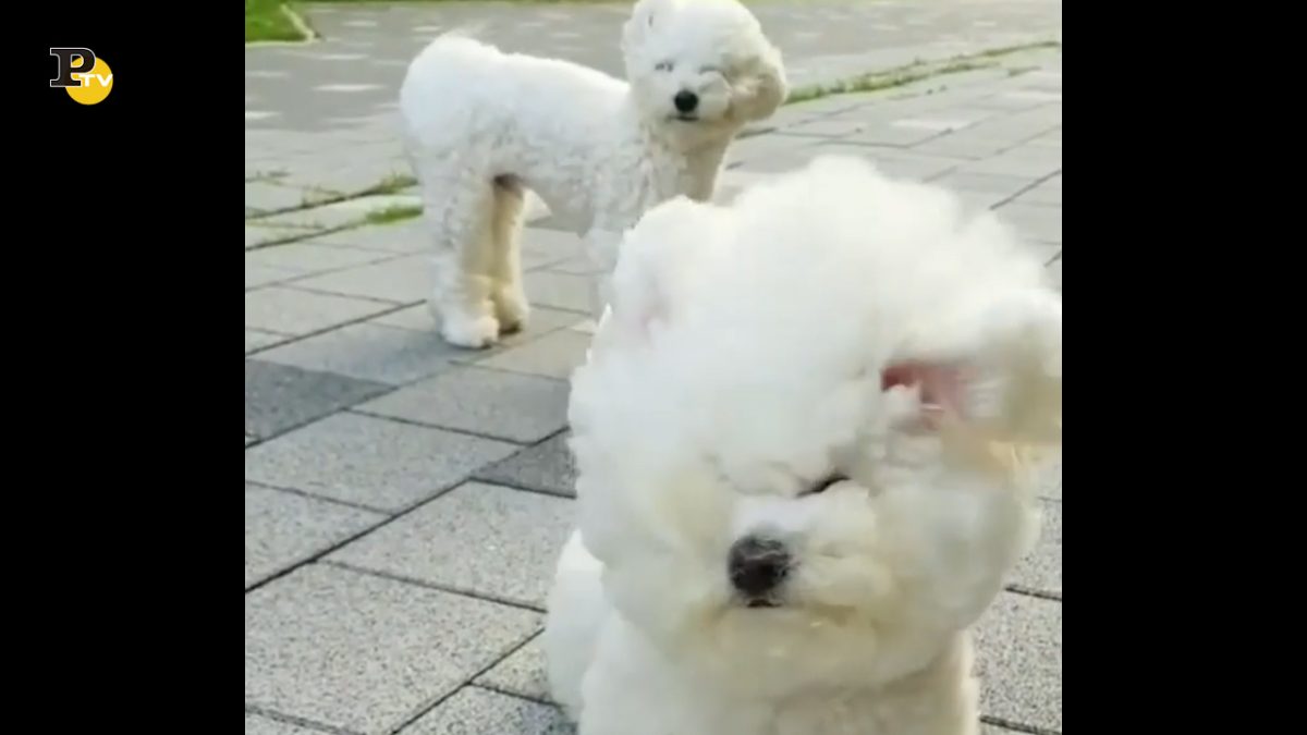 Questi cani tanto teneri hanno la “capigliatura” scompigliata per via del forte vento che soffia. Che divertenti!