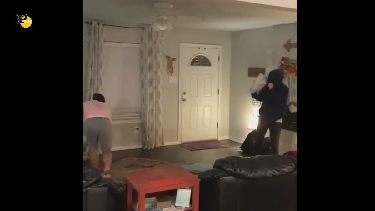 Questi due ragazzi cercano di prendersi a cuscinate avendo però gli occhi “bendati”. L’effetto è molto divertente perchè non riescono nel loro intento e girano a vuoto!