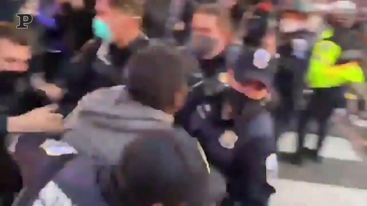 Una barriera eretta apposta per difendere la Casa Bianca dalle sommosse. I manifestanti si sono riuniti fuori dalla residenza presidenziale: tra di loro sono presenti sia sostenitori del presidente Donald Trump e democratici, soprattutto attivisti del movimento Black Lives Matter. Molti gli scontri tra manifestanti e polizia, tanto che nelle immagini del video si vede un uomo preso dai militari e arrestato.