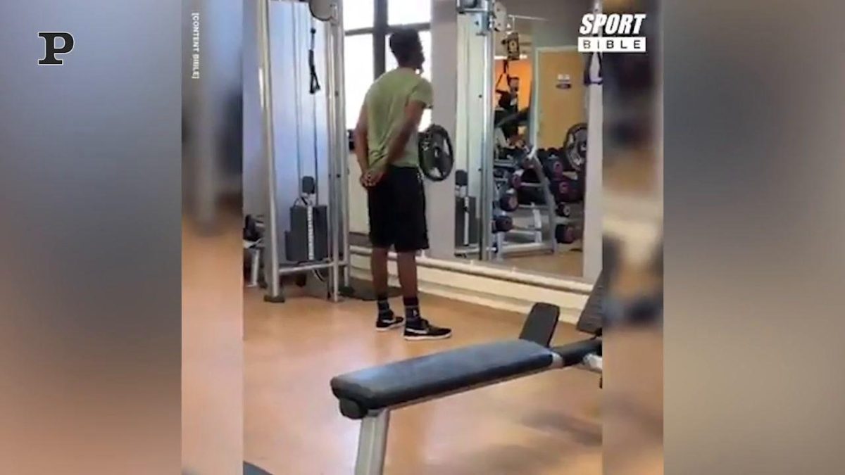 Un esercizio alquanto particolare quello eseguito da quest’uomo in palestra. Ha appeso al collo un disco pesante, come se fosse una collana, e muove la testa su e giù. Chissà che muscoli aveva intenzione di allenare… Sperando che non si sia fatto male! Da non ripetere assolutamente in palestra (quando riapriranno) ma neanche a casa.
