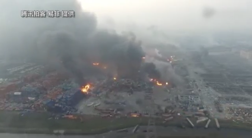 Ecco quello che resta poche ore dalla terribile esplosione avvenuta nel deposito di materiale chimico di Tianjin, nord della Cina. Un drone ha volato sopra la città mostrando la distruzione che l’esplosione e la successiva onda d’urto hanno lasciato dietro di loro.