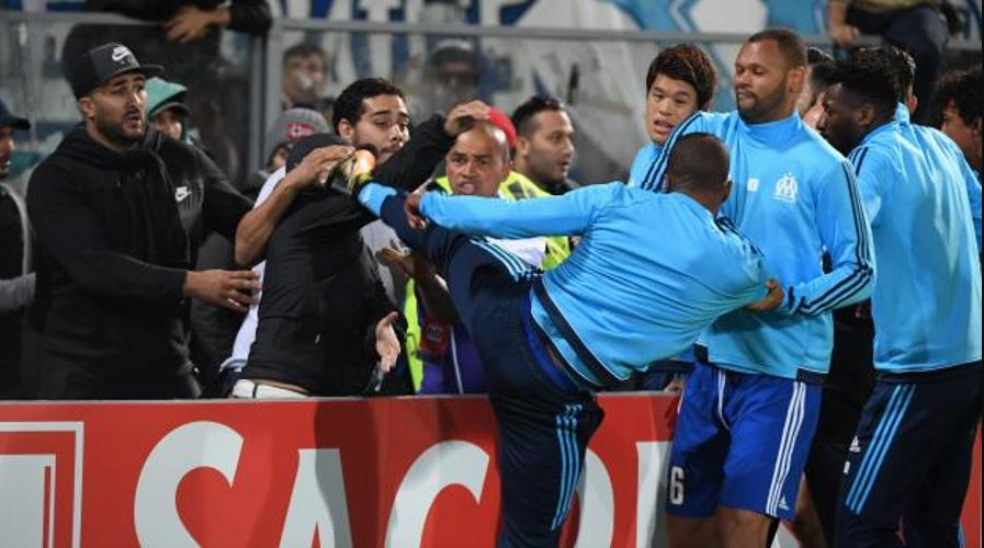 Patrice Evra è stato espulso prima della partita di europa League tra il suo Olympique Marsiglia ed il Vitoria per aver colpito con un calcio in faccia un tifoso. Un gesto identico a quello famoso di Cantona, al Manchester United ed arrivato al termine di un pesante faccia a faccia tra alcuni giocatori della formazione francese ed i rappresentanti degli Ultras della loro stessa squadra.
