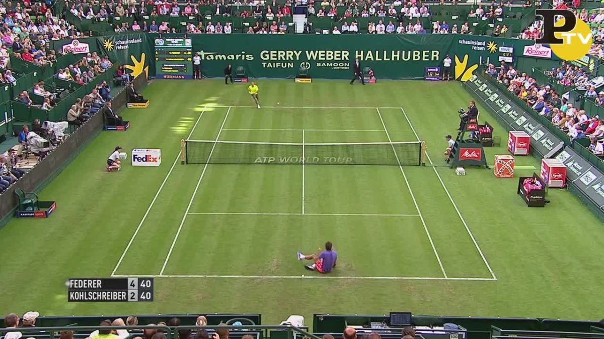Impegnato nel primo turno del torneo di Halle Roger Federer ha faticato ad avere la meglio del tedesco Kohlschreiber, sconfitto 7-6(8) 3-6 7-6(5) al tiebreak del terzo set dopo due match point salvati dallo svizzero. Nonostante questo Federer non ha rinunciato a regalare agli spettatori alcuni dei suoi colpi spettacolari; tra cui un incredibile recupero dopo una scivolata, colpendo la pallina da terra…