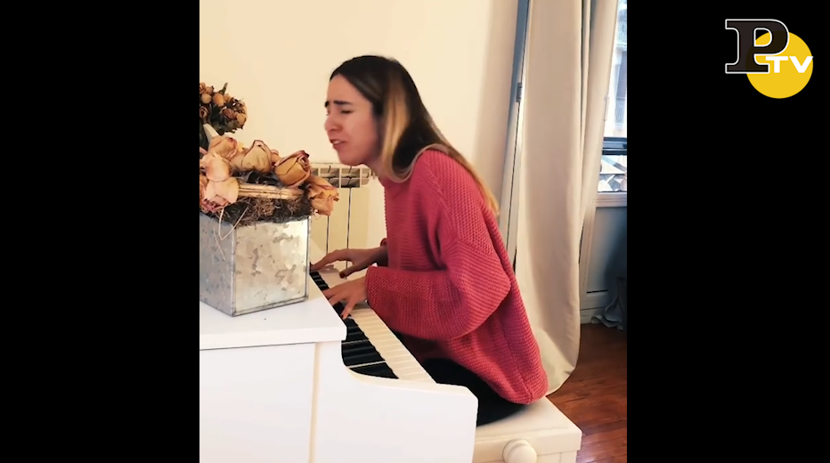 Qui la cantante si esibisce nel brano che ha portato al Festival e si accompagna mentre canta, suonando il pianoforte (Instagram: @federicabbateof)