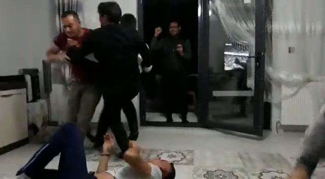 Gol decisivo nel finale della partita e così reagisce un gruppo di amici che sta seguendo il Fenerbache davanti alla televisione: si scatena la gioia ma uno di loro finisce a terra per una mossa da wrestling del compagno di fede calcistica (video tratto da Twitter)