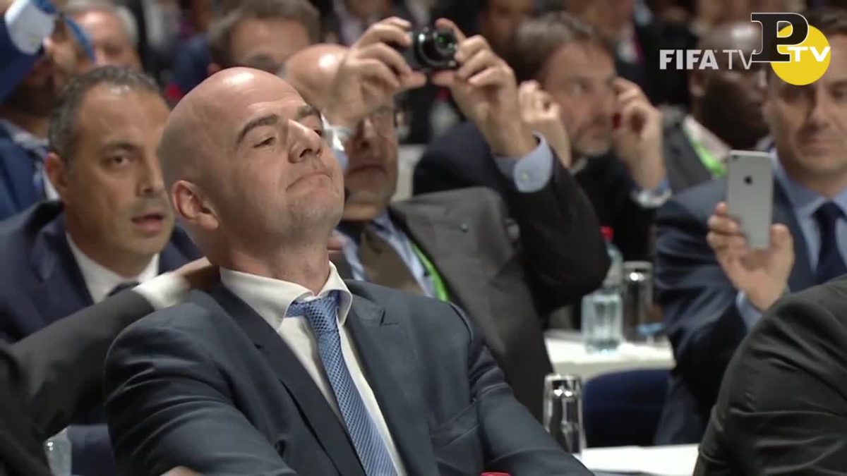 Il momento dell’elezione di Gianni Infantino, 45 anni avvocato, svizzero di origine italiana, che ha sconfitto il favorito sceicco Salman Al-Khalifa nella corsa alla presidenza della Fifa, dopo la squalifica di Sepp Blatter. Le mani sulla faccia al momento della proclamazione e poi l’emozione sul palco durante il primo discorso, in 6 lingue, davanti all’assemblea. Qui la traduzione integrale:
