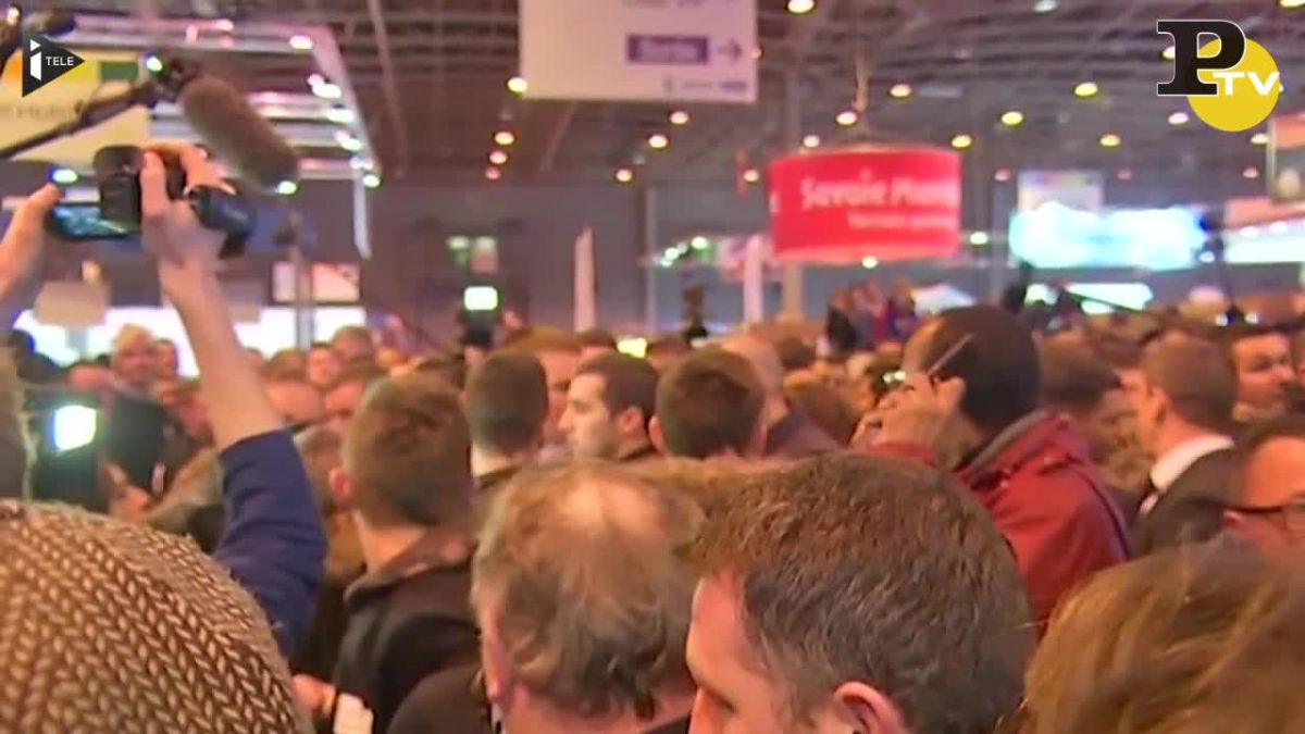 Il presidente francese Francois Hollande è stato vittima di una contestazione durante la sua apparizione al salone dell’agricoltura. La folla di contestatori si è accalcata intorno al premier fischiandolo e insultandolo pesantemente: “sei un buono a nulla” una delle frasi urlate dagli allevatori, esasperati dalla crisi nel settore.