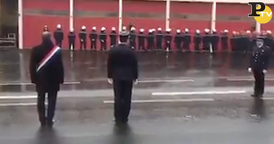 A muoversi contro di lui non sono solo i cittadini, con le proteste dei gilet gialli, ma anche gli avversari politici che lo spingono a dare le dimissioni per evitare che il collasso del Paese. Addirittura anche i vigili del fuoco, come si vede qui, gli girano letteralmente le spalle (Facebook: @DégageonsMacron)