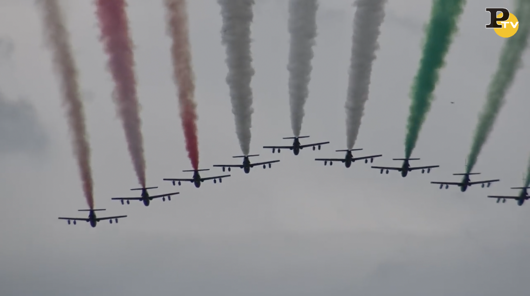 Un doppio passaggio con il tricolore che copre il cielo. Non poteva mancare pochi minuti prima del via del Gp d’Italia di Formula 1 sul circuito di Monza lo spettacolo delle Frecce Tricolori, la pattuglia acrobatica della nostra Aeronautica Militare che da anni resta una delle nostre eccellenze.