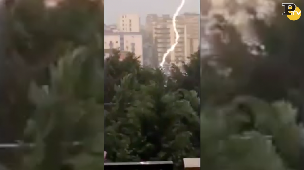 Il video, girato da un abitante del centro che stava riprendendo il temporale, ha colto in pieno l’esatto momento in cui il fulmine si abbatte sulla strada, facendo esplodere forse un automobile