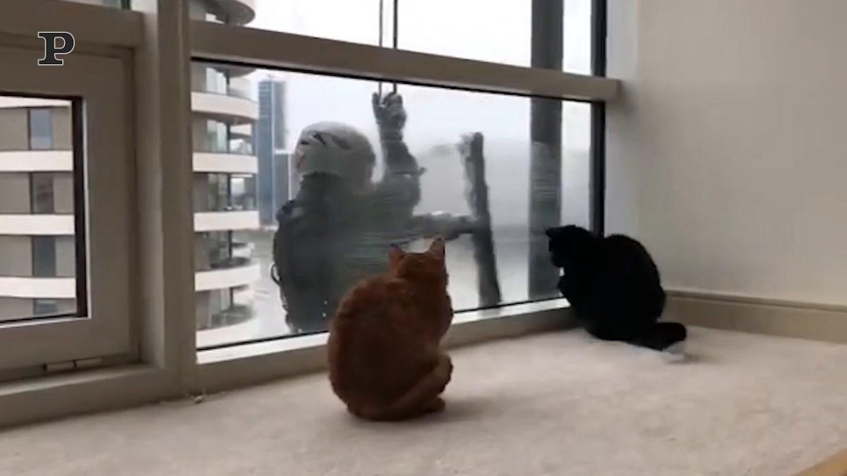 Le amicizie più belle sono quelle che nascono per caso, esattamente come quella nata tra un simpatico lavavetri ed i due gattini protagonisti di questo video. I due vivono ai piani alti di un lussuoso palazzo ed ogni volta che incontrano il lavavetri sono sempre pronti a giocare. Loro rincorrono la spazzola e lui cerca di muoverla in maniera buffa per intrattenere i suoi nuovi amici. Davvero uno spasso!