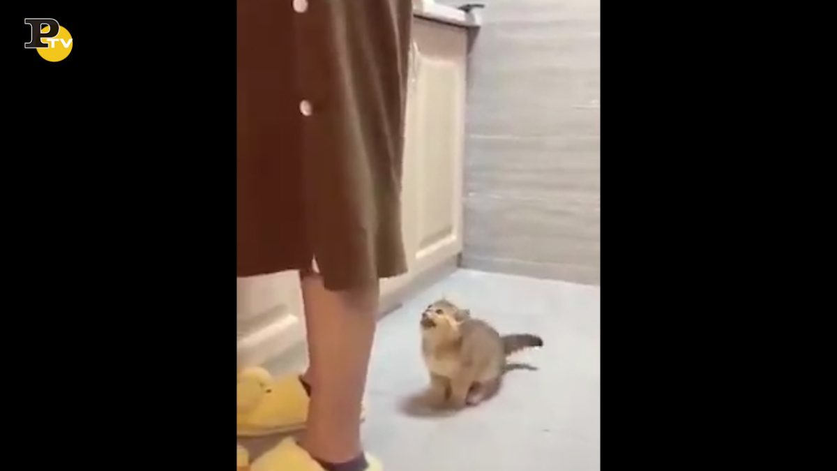 Questo gattino era davvero molto affamato e ha trovato un modo molto divertente e insolito per attirare l’attenzione della sua padrona intenta a cucinare…