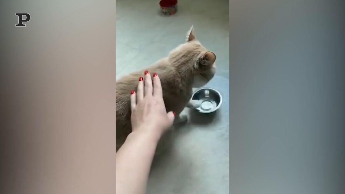 É l’ora della pappa per questo tenerissimo gattino che tenta di comunicare in tutti i modi alla sua padrona che è giunto il momento di riempire la sua scodella. Scuote la ciotola per attirare la sua attenzione e la guarda con i suoi dolcissimi occhioni. Impossibile resistere a tanta dolcezza!
